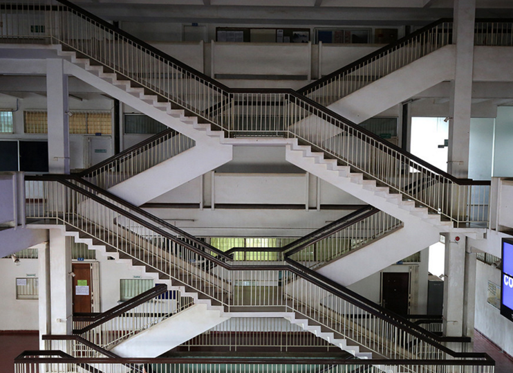 外語樓別具特色的設(shè)計,能夠有效分流人群,防止擁堵和踩踏事件