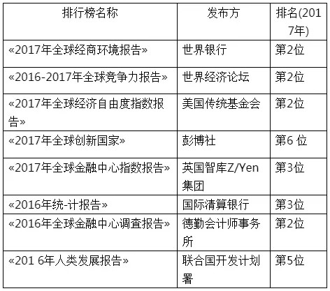 新加坡在全球各大排行榜中的排名情況