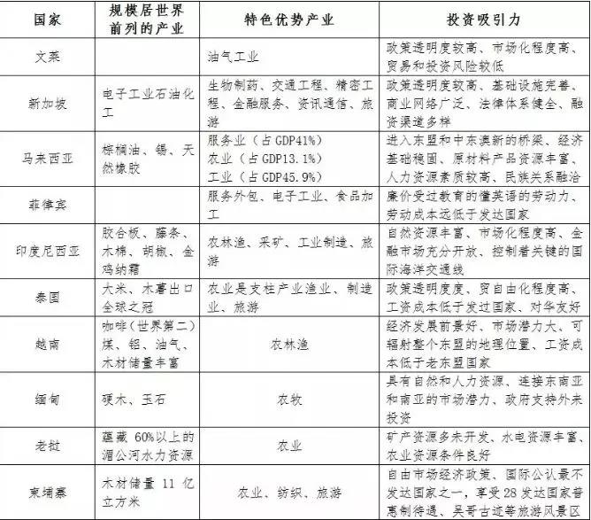 東盟各國投資吸引力