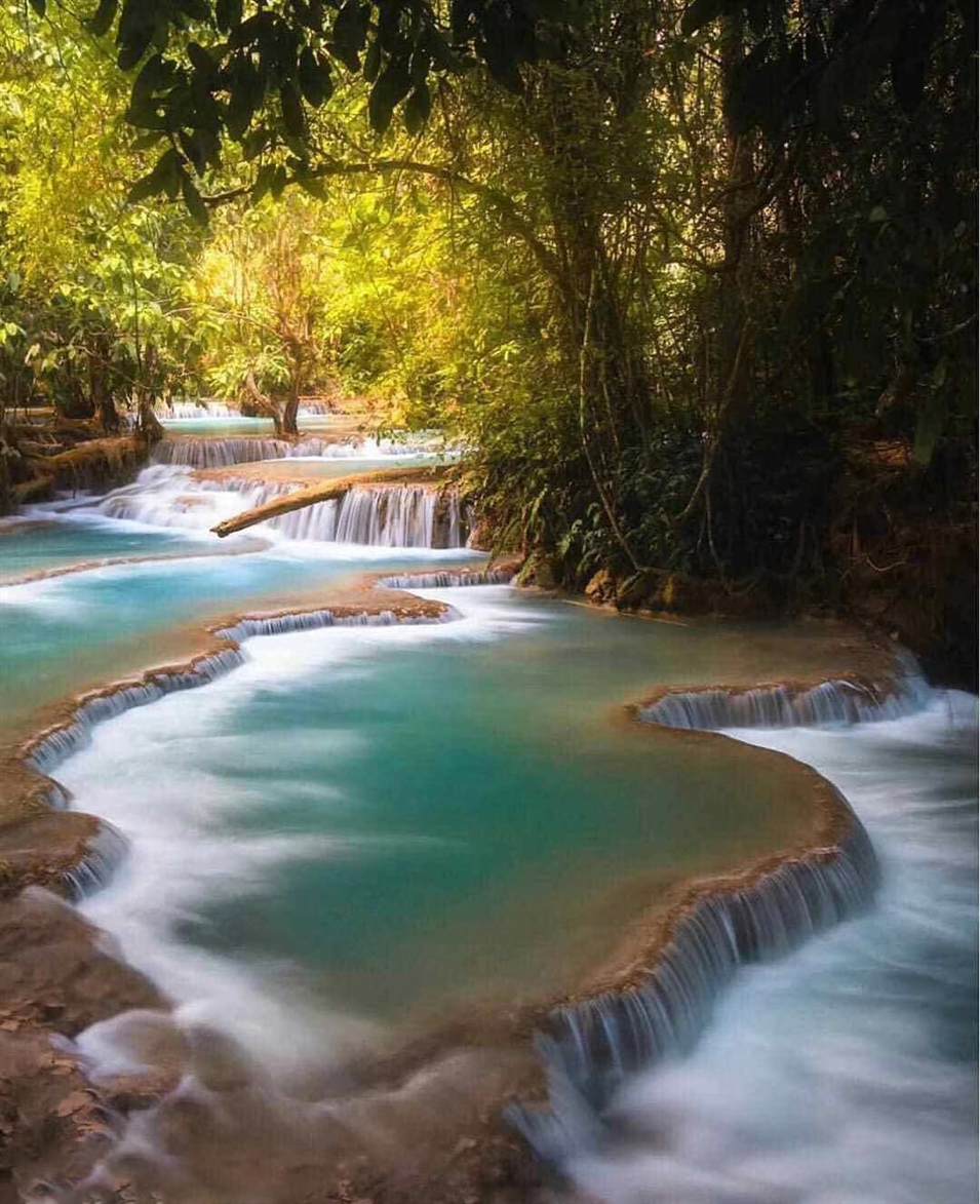 光西瀑布又叫金鹿瀑布,水流100多米熱帶叢林中傾瀉流入湛藍的水潭中,非常有氣勢。瀑布周圍森林茂密,郁郁蔥蔥,水質(zhì)也清澈透藍。瀑布層層疊疊,順流而下,形成多個泛著藍綠色光澤的小水潭。