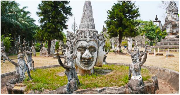 坐落在首都萬象東南部湄公河畔上的香昆寺(又叫佛像公園),寺如其名,公園里到處都是千姿百態(tài)的佛像和雕塑,這是一個(gè)怪人荒誕野心的紀(jì)念物。它的創(chuàng)建者創(chuàng)建者班勒威·蘇里拉是一名泰國僧侶,他將印度教和佛教的哲學(xué)思想、傳說和肖像學(xué)融會貫通,組合成一個(gè)神秘的整體。