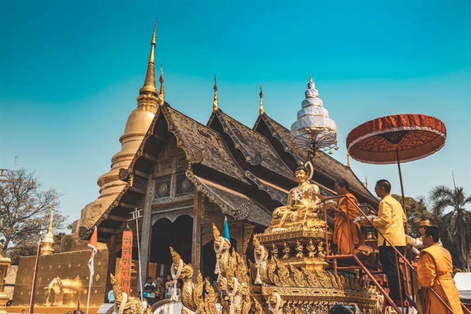 4月13日這天代表著一年的終結(jié),被稱為“馬哈宋干日”。作為一個(gè)全國(guó)大多數(shù)人們都信奉佛教的國(guó)家,宋干節(jié)的一天就是從前往寺廟開始,從虔誠地供奉物品到用干凈的水清洗佛像,甚至還會(huì)有佛像在街道上巡游。獨(dú)特的宗教文化給泰國(guó)的節(jié)日氛圍帶來一絲與眾不同的氣氛。