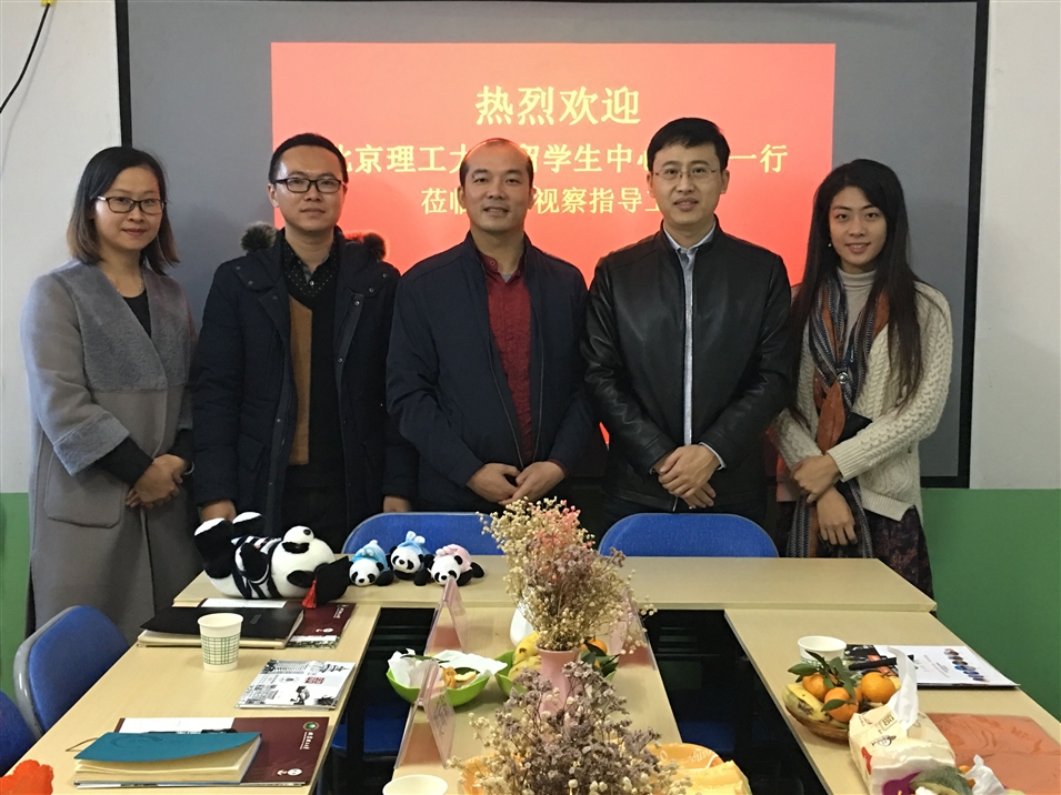 2017年1121日上午,北京理工大學(xué)留學(xué)生中心領(lǐng)導(dǎo)趙坤副主任與沈佳培蒞臨廣西金沛教育發(fā)展有限公司視察指導(dǎo)工作,由我司董事長(zhǎng)粟宥朝、校長(zhǎng)張金雪、與國(guó)際部吳琪陪同。